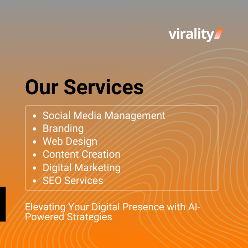 At Virality, we specialize in crafting powerful, high-quality content that engages, informs, and converts. Whether you’re building a brand from scratch or elevating an existing one, our creative team delivers compelling design and media tailored to your unique identity and goals.